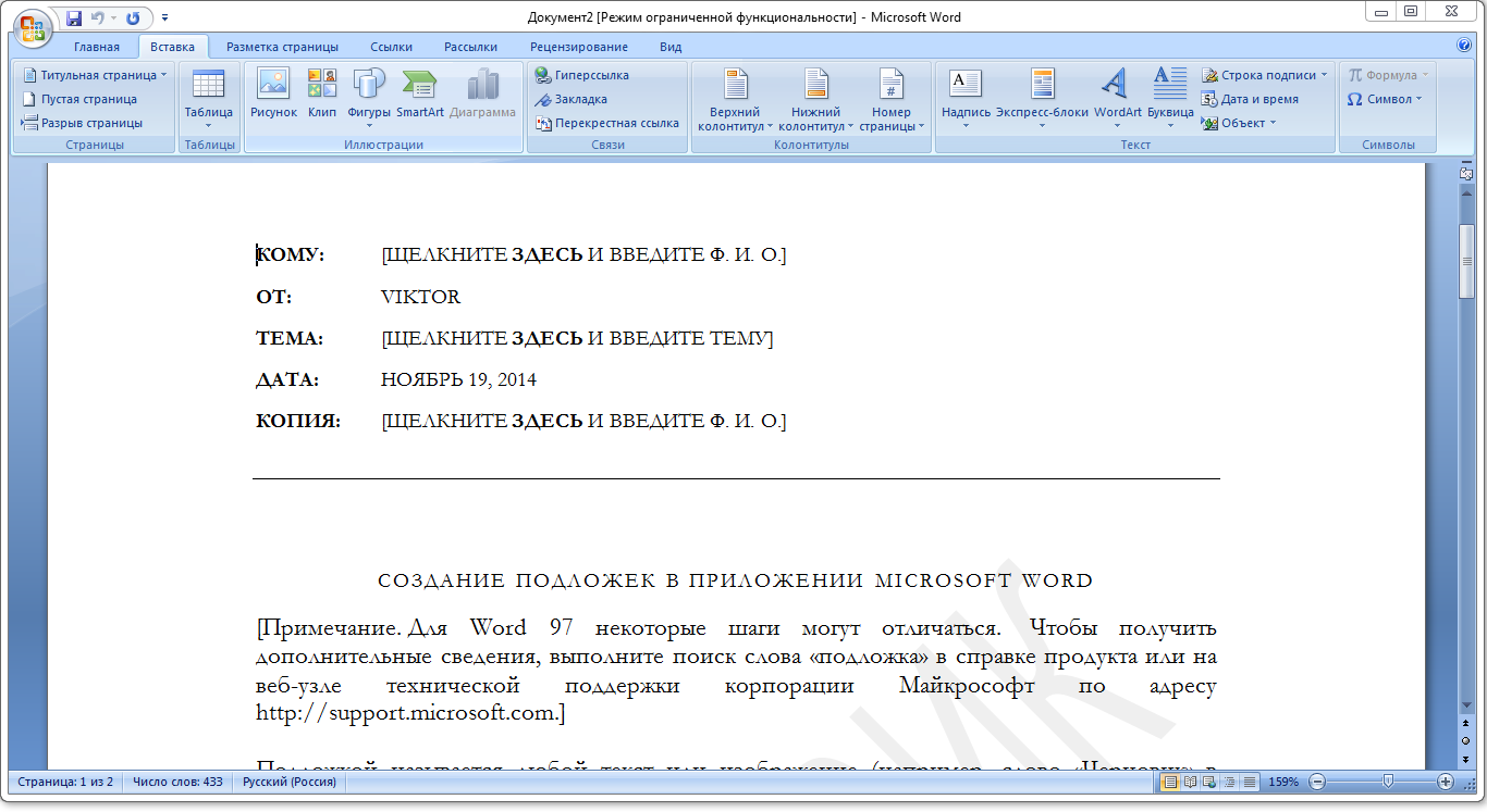 | Программа | Word 2007 |